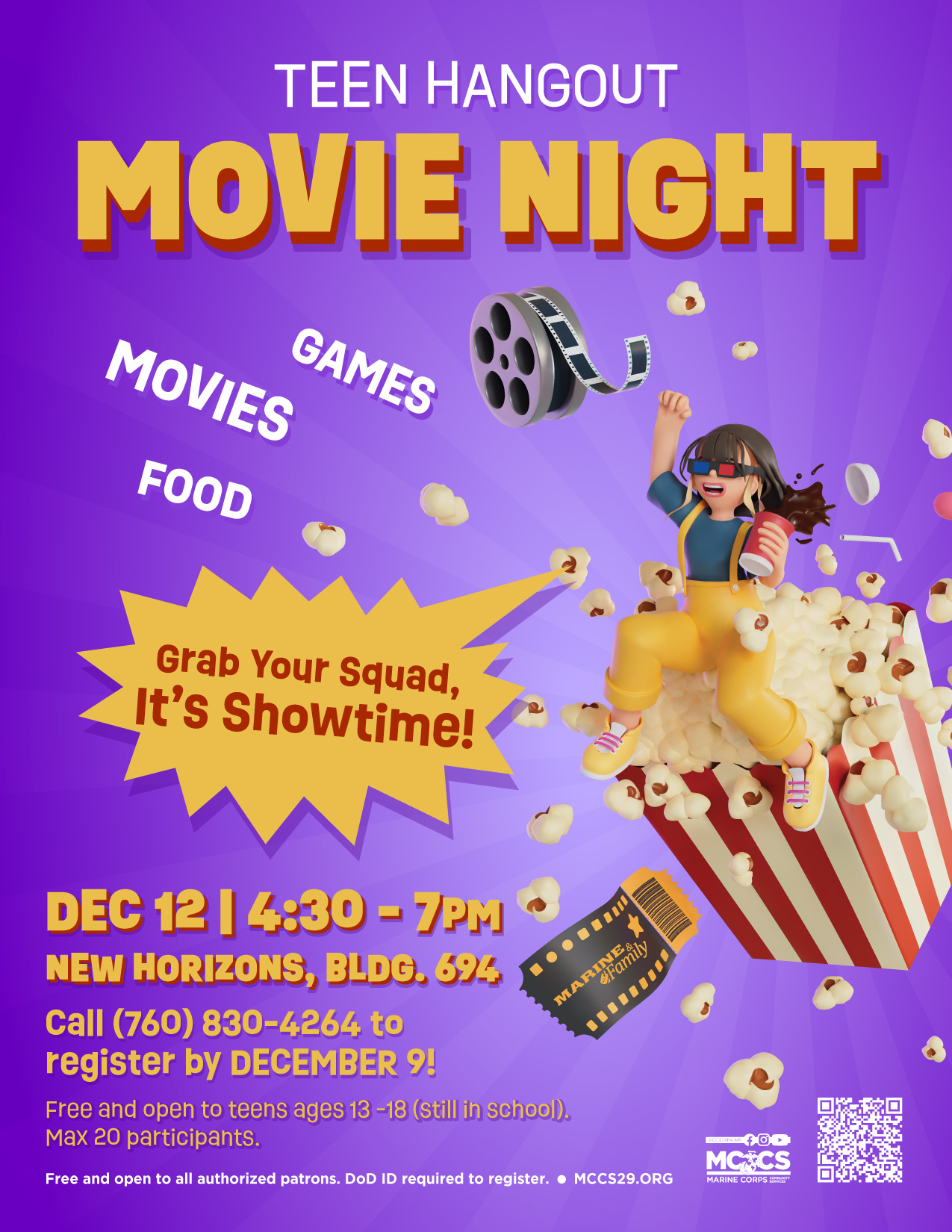Join us for a fun night with a MOVIE, GAMES, FOOD and DRINKS!