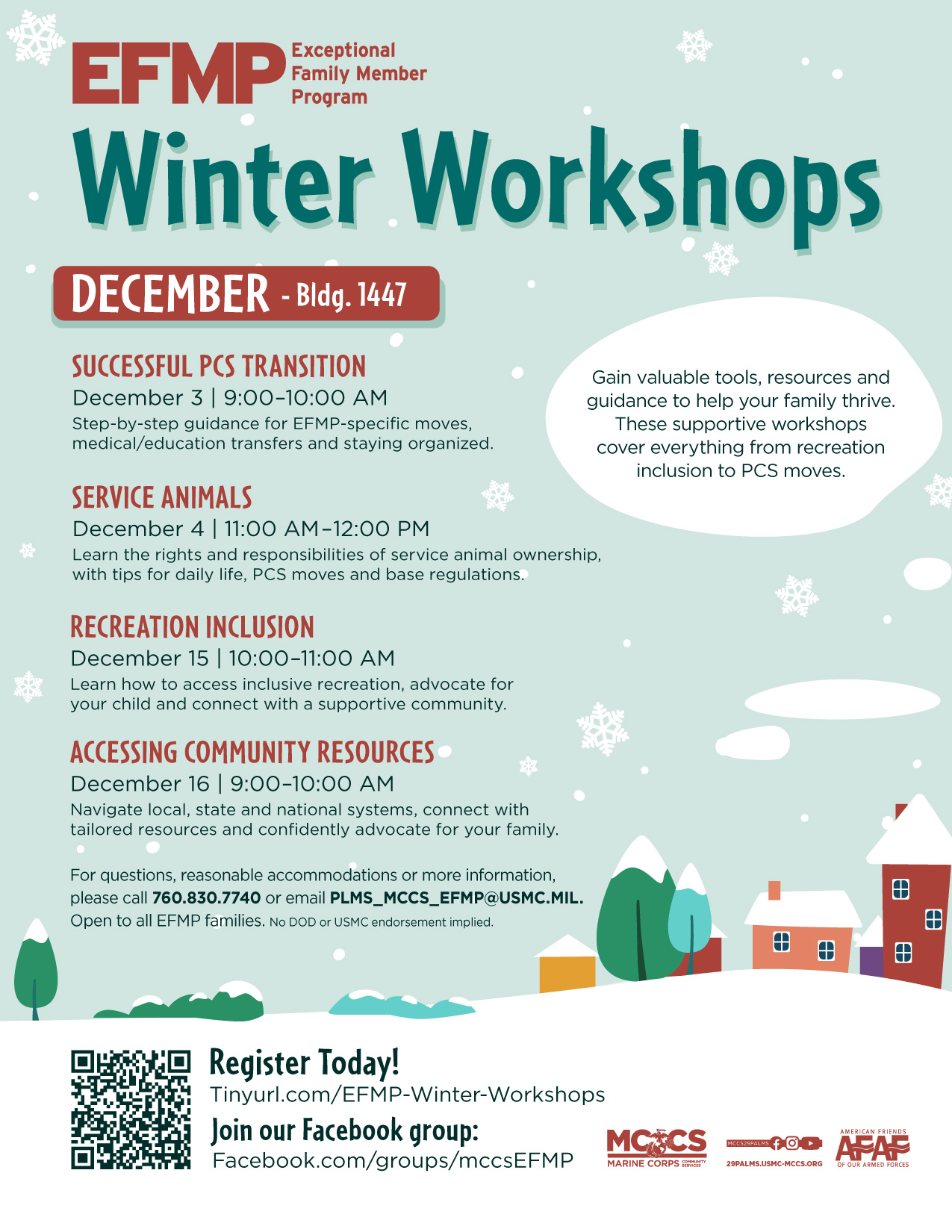 Join our Facebook group for the latest updates and program information: facebook.com/groups/mccsEFMP