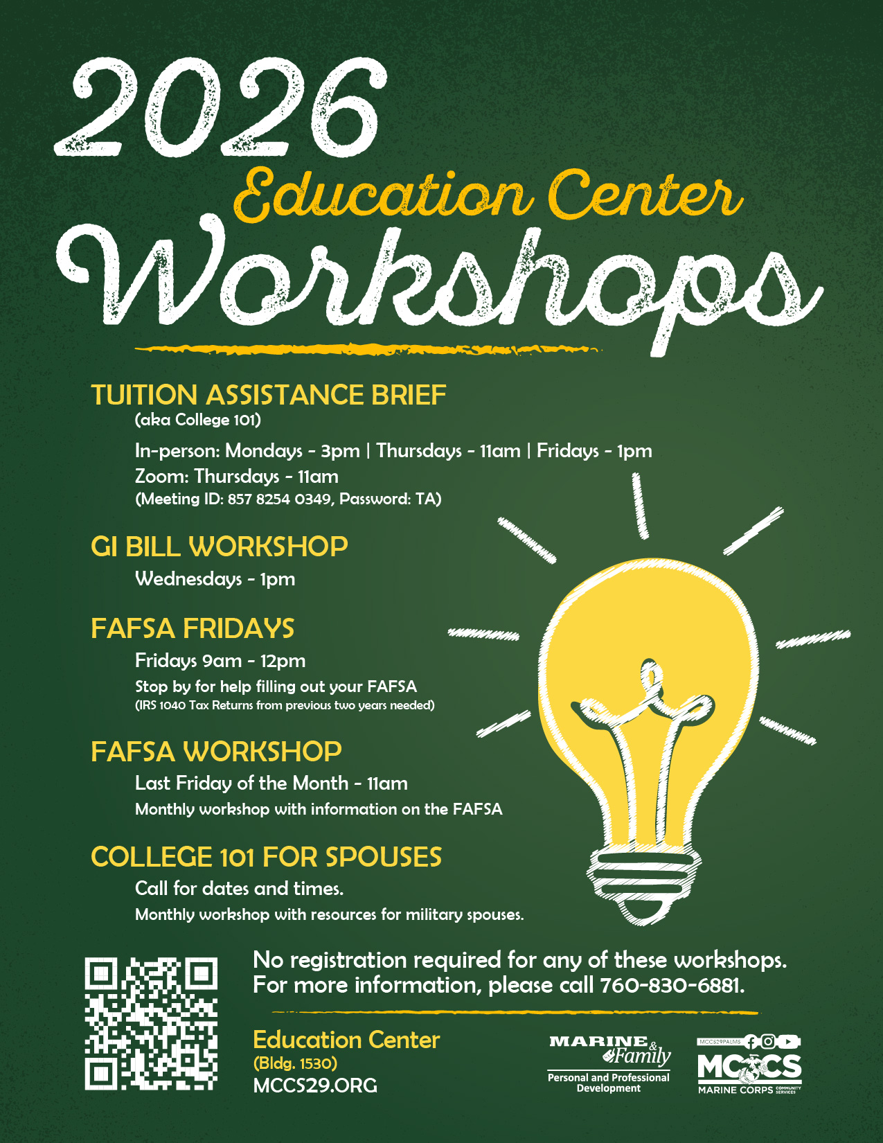 Education Center Workshops 2026