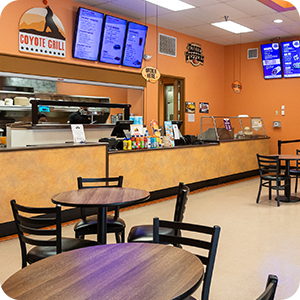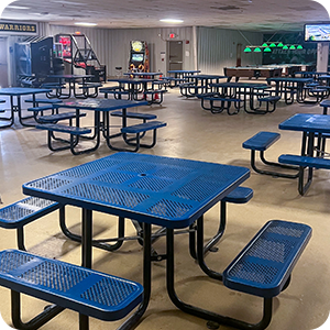 | Yes | Tables and chairs | Only food purchased at location (Game Time Sports Grill) |